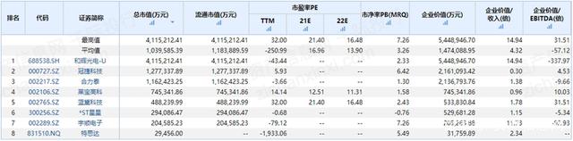 表 中國(guó)上市行業(yè)公司估值對(duì)比