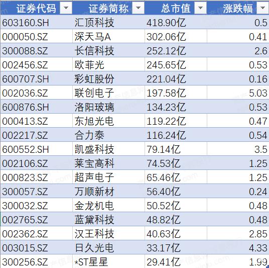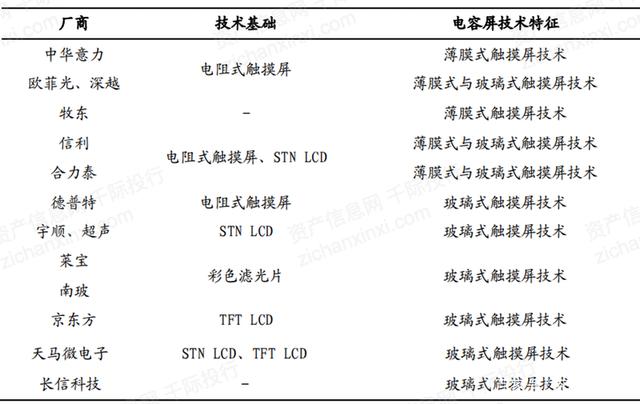 表 觸摸屏行業(yè)上市公司