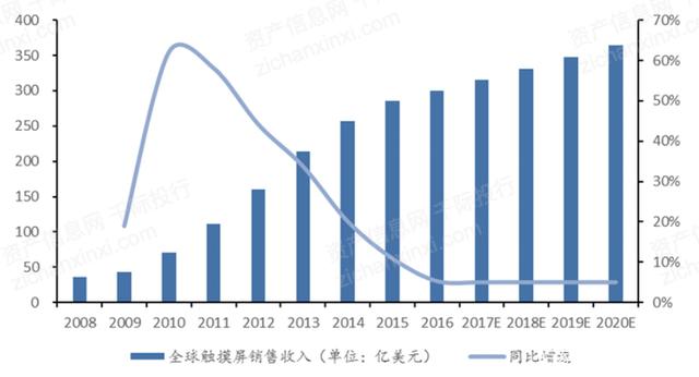 圖 2008至2020年全球觸摸屏市場(chǎng)增速統(tǒng)計(jì)